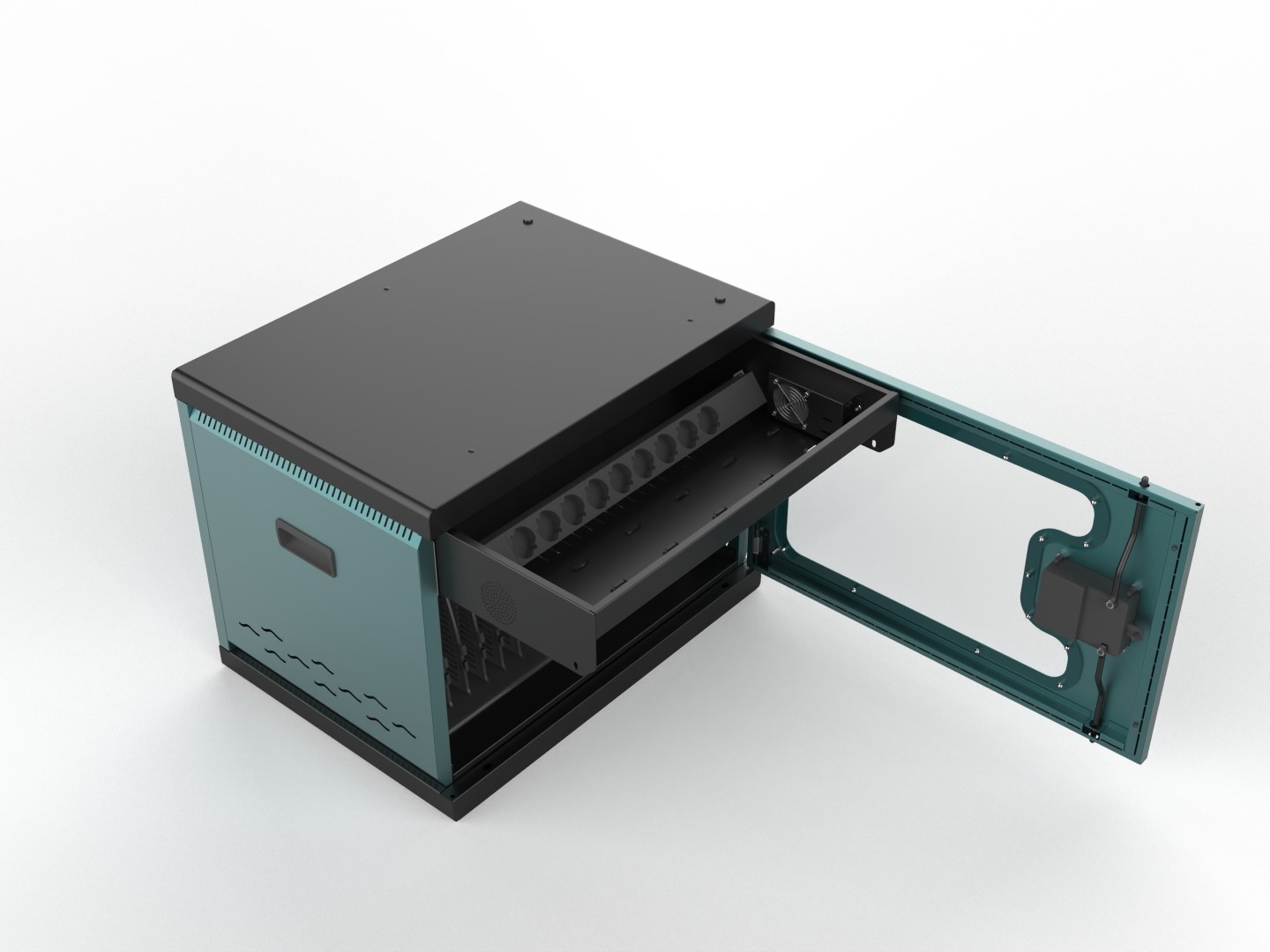 Armadio di ricarica intelligente progettato per ospitare e alimentare fino a 16 dispositivi elettronici come tablet, notebook o Chromebook. Ideale per scuole, uffici e ambienti professionali dove è richiesta una gestione ordinata, sicura e centralizzata dei dispositivi.